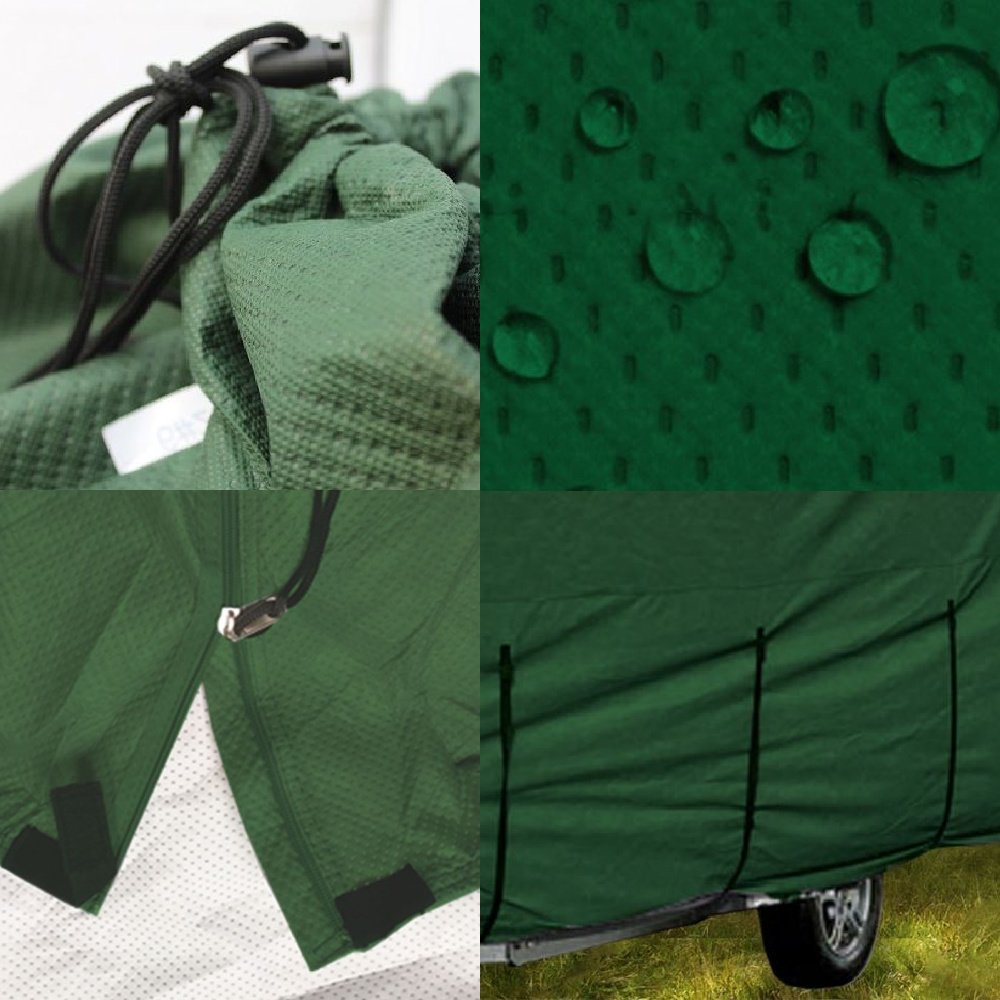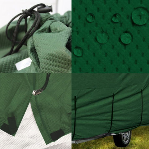 - Waterproof and Breathable: The cover is constructed with a 4-layer design, making it highly water-resistant while still allowing for breathability. This helps prevent dampness and mold build-up inside the caravan.