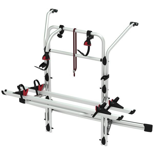 Supplied as standard with two New Premium rails, it can easily carry up to 4 bikes. This version allows the installation of the rail support base in two different positions, one standard and one lower to make it easier to load the bikes. Lower version must be used with the License Plate Carrier, which has the license plate holder bar and regulation lights.