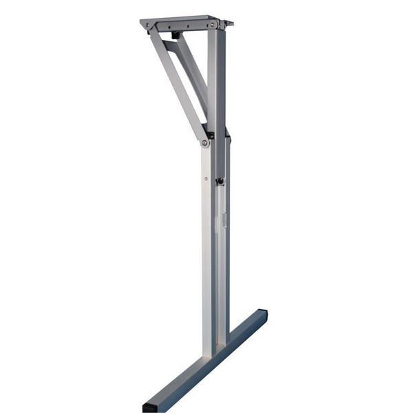 Innovative and lightweight space saving design which folds down to a single fold leg thickness. The leg can be used singularly for a dinette or as a pair for a free standing table. The mechanism locks the leg in the open and closed position for security and stability in use and stowage. Made from strong lightweight aluminium.