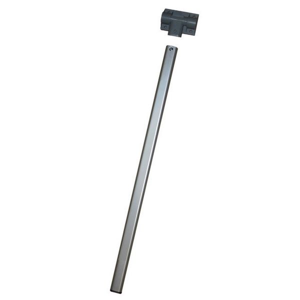Oval anodised aluminium table leg complete with hinged plastic fitting plate. Leg can be removed from hinge for storage. To be used with 'Kit Pin' wall mounted table rail system.
