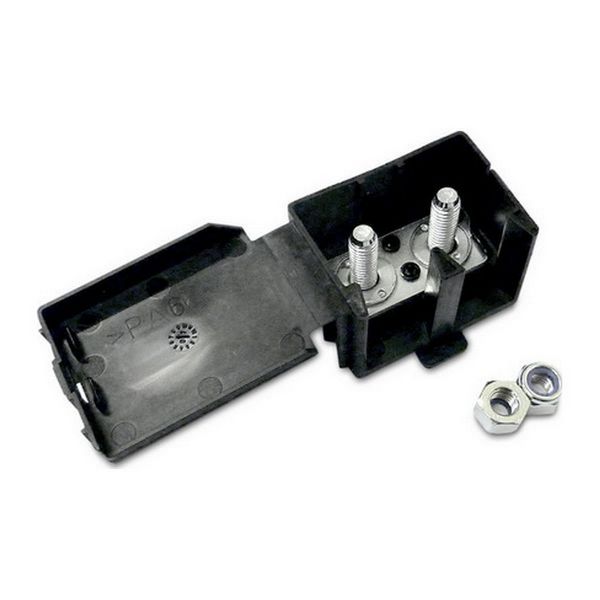 Power Junction Box suitable for joining together several cables that are fitted with ring terminals. Each box has a lid to cover the connections and a fixing hole for securing to a firm surface. Metric stud size 8mm Continuous rating 300amp. Dimensions (H x W x D): 35mm x 61mm x 44mm. Quantity. Per Pack: 1