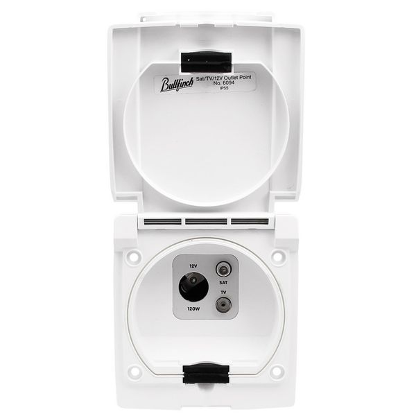 Satellite/TV 12v outlet point. Provides IP55 protection against water and dirt ingress even when the plug is fitted. Three outlets 12 volt (Cigar lighter fitting) / Satellite / TV connections.