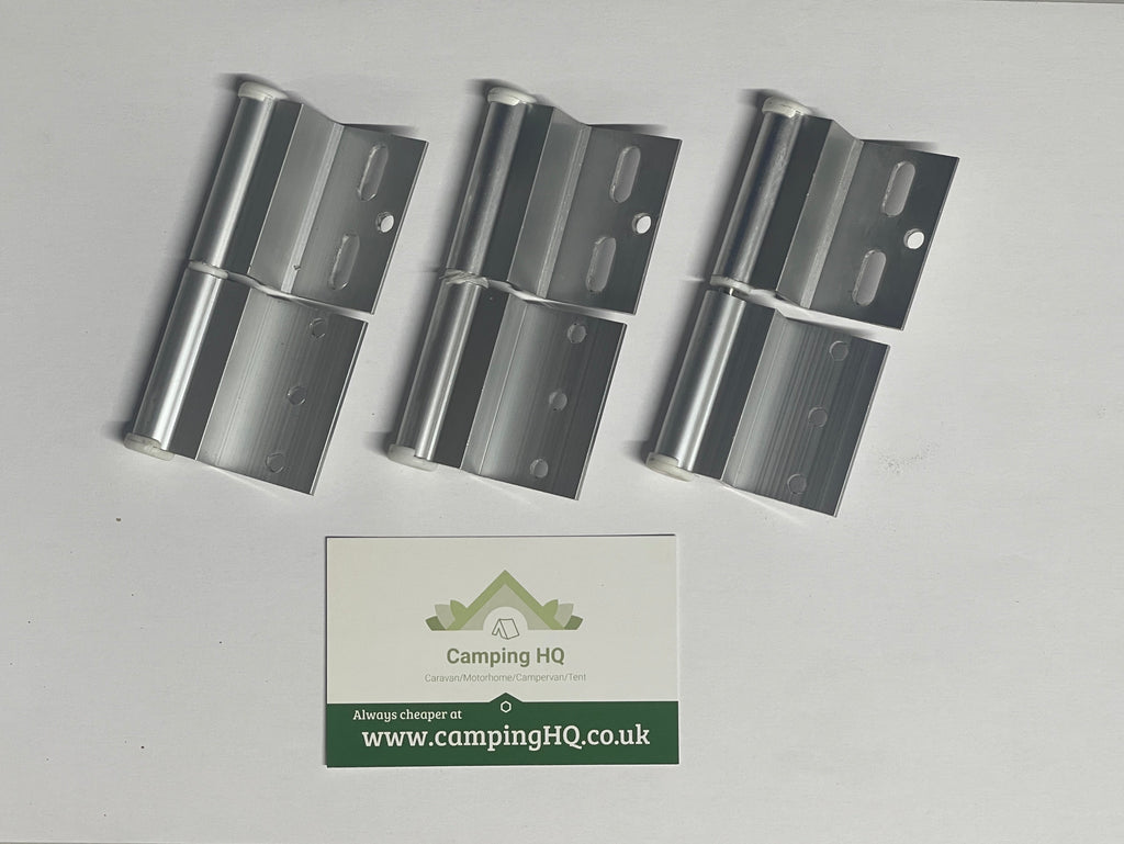 3x Ellbee door hinges, right hand, aluminium. Overall height 93mm.