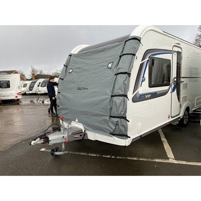 This Towing Cover Is Designed To Be Adjustable. It Has Adjustable Straps And Kador Strips On Both Sides Of The Cover To Allow It To Fit On Any Width Caravan Between 7Ft 6In To 8Ft. The Unique Design Allows For A Tight And Secure Fitting For All Sizes.