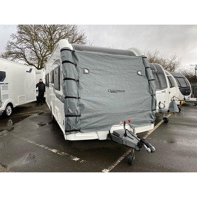 Our Caravan Front Cover Is A Great Accessory For Keeping The Front Of Your Caravan Protected From Exhaust Emissions And Road Debris. Smart, Sleek And Stylish Design, With High Quality Materials And Natural Grey Colour Way. Be Sure To Keep Your Vehicle Clean And Save Hassle Having To Clean Your Front Windows Upon Arrival To The Site Or Home By Making Sure You Are Using One Of Our Amazing Cover. Complete With Adjustable Straps, Lights (Batteries Not Included), Tow Hitch Strap And A Great Durable Material This Will Surely Be On Every Caravaners Wishlist.