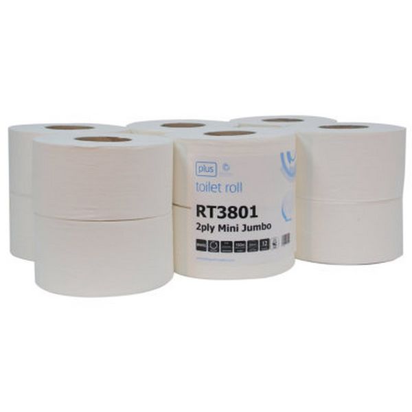 Mini jumbo rolls offer a high capacity roll for those with smaller wash rooms. Mini jumbos are a cost effective system for high usage washrooms and this toilet roll provides the equivalent of 7 standard conventional toilet tissue rolls. These mini jumbos are manufactured from recycled paper and will fit any mini jumbo dispenser that accepts a 76mm/3” core and a 200m roll. We stock two dispensers IK299640 and C7294013 for this mini jumbo roll. This mini jumbo is a 2ply white toilet roll with a core of 76mm/3”. 200m in length and sold in cases of 12.