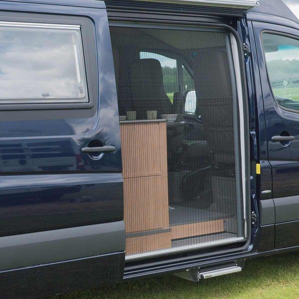 REMIcare pleated fly screen door designed specifically for Mercedes Sprinter vehicles built from 2006.