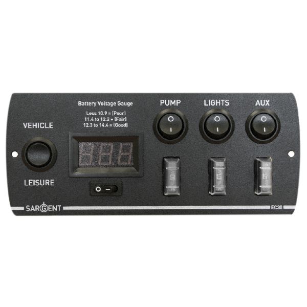 The Sargent EC30 control panel is a general-purpose battery voltage gauge used in caravans and campervans.