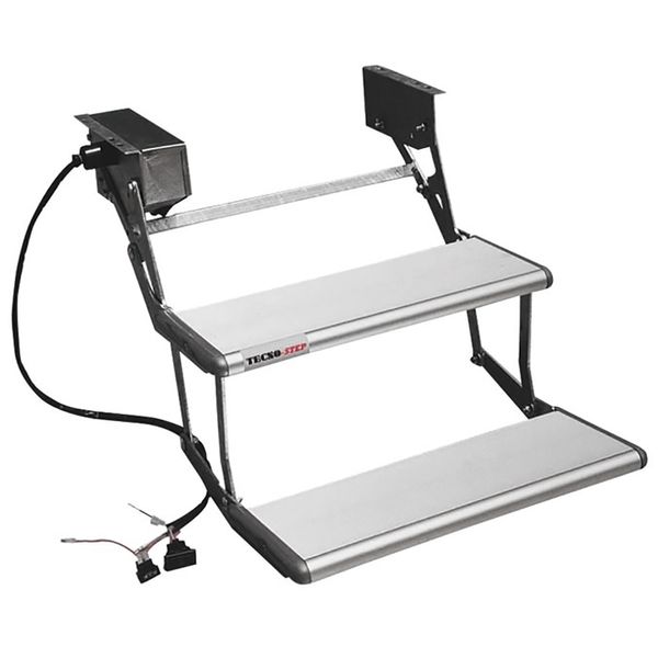 The Techno Double Steps are a recent addition to the motorhoming world the combined effort from the manufacturers past and current technology the Techno steps quickly appeared as a quality piece of engineering. The Techno Double Steps are made from hot galvanised steel and features footboards made from anodised aluminium which also have side guards to help prevent sliding. All Techno Double Steps come complete with wiring to make installation as trouble free as possible installation is simple and is only a few connections away from use.
