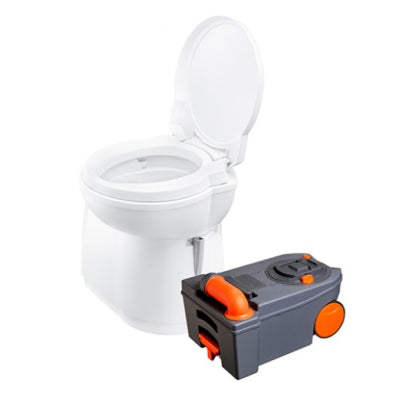Thetford built-in cassette toilet consists of two parts: a permanently installed toilet and a removable waste-holding tank. a clever indicator lets you know when the tank needs to be emptied, and you can access and remove the tank through a small door on the outside of the vehicle. the c263-s is designed to drawn its flushing water from an onboard water tank.