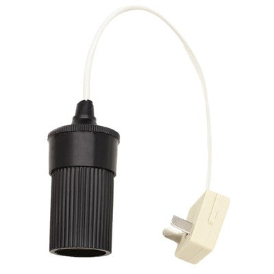 Caravan/boat 2 pin plug to car cigar lighter adaptor. enables appliances fitted with car cigar lighter plugs to be used with w4 2-pin socket outlets. useful for: car vacuum cleaners, car phones, 12v kettles, coffee makers, 12v battery chargers (camcorder, etc.), and many other items fitted with car cigar lighter plugs.