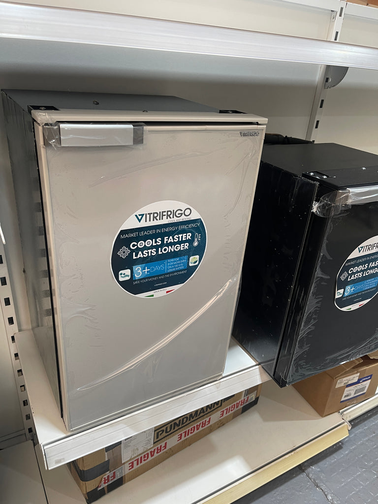 Vitrifrigo 50 litre 12 volt (or 24v) dc compressor fridge popular for small campervan conversions. ideal to run from solar power.