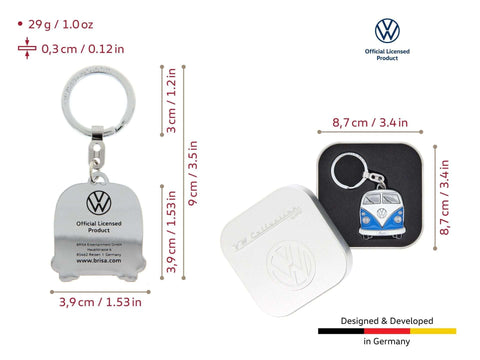 Make your bunch of keys stand out with this stylish VW T1 "Bulli" Bus/Campervan key ring! The key rings look like the legendary VW Classic "Bulli" Bus/Campervan and are available in a range of colours. This model is a great accessory for collectors and fans. This fantastic sight immediately evokes a feeling of nostalgia for the 60s - freedom, wanderlust and joie de vivre. As Volkswagen's largest licence holder, we always strive to maintain the highest quality standards.