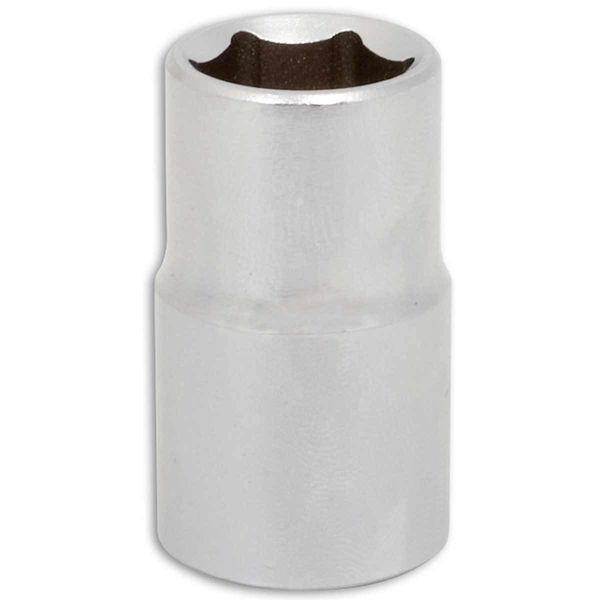 A standard 14mm single Hex 1/2"drive socket manufactured from durable chrome vanadium steel with a polished finish. The six-sided socket head drives from the flats to provide more torque, which is useful for freeing seized nuts and bolts, whilst avoiding the risk of rounding. The socket has slightly convex internal faces and drilled out corners for a solid grip, even on damaged fastener heads. , Normal Lead Time 2-3 days