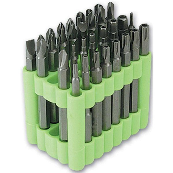 A 32 piece set of longer length bits are made of chrome vanadium and are suitable for use with power tools. This bit set includes specialist bits in tamperproof format for automotive and electronic use.