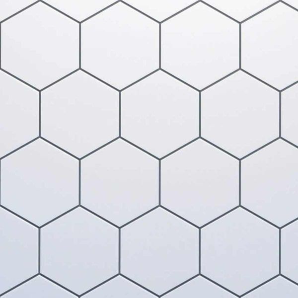 Reco wall panel featuring a white hexagon pattern tile with contrasting dark grey grout.