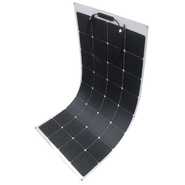 55W Flexible Solar Panel, 12V nominal. Constructed using monocrystalline cells with multi-point connections, sealed in ETFE on a TPT base - the combination of these materials and construction make for a highly durable panel that is resistant to UV degradation, flexible enough to resist cracking with up to 30mm bend height and can be walked on when suitably installed on the roof of your boat, yacht, RV / motorhome or other load-bearing structure. Complete with MC4 connectors. Max open circuit voltage 18V, and as with all solar panels, should be used in conjunction with a suitably rated regulator. Can be mounted using flexible sealant/adhesive. 2 yr manufacturers warranty., Delivery 3 - 4 working days